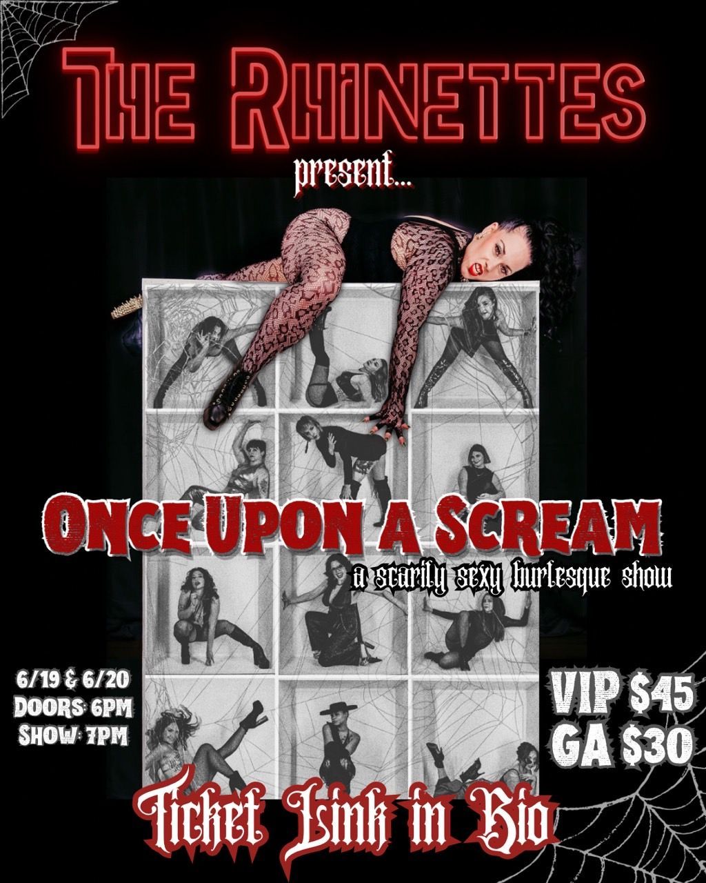 In the dark, they dance. The Rhinettes present Monster Mania: Once Upon a Scream — a scarily sexy burlesque spectacular. Vampyra, your wicked host and MC, guides you through a collection of twisted bedtime stories personally requested by her niece, Wednesday Addams. From Dracula and Elvira to the Joker, these eerie, seductive tales will send delicious chills down your spine as history’s most notorious “monsters” reinvent themselves onstage.